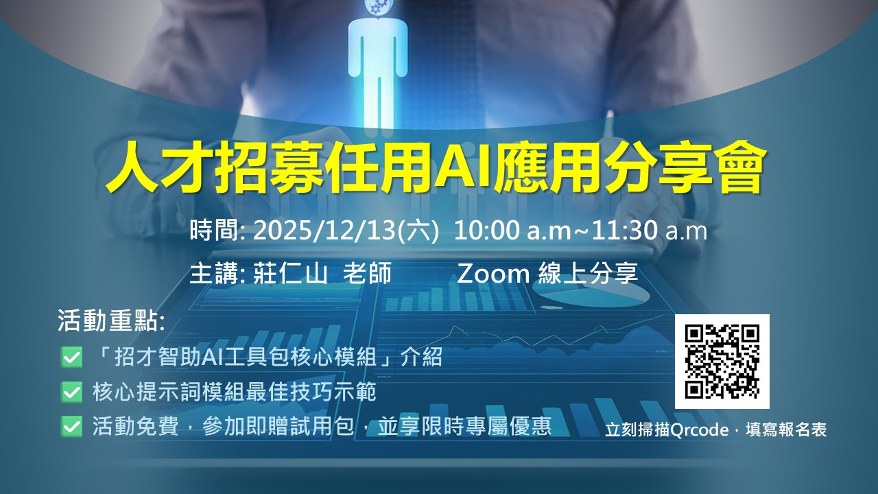🔥 12/13 (六) 10:00-11:30 「人才招募任用 AI 應用」線上分享會